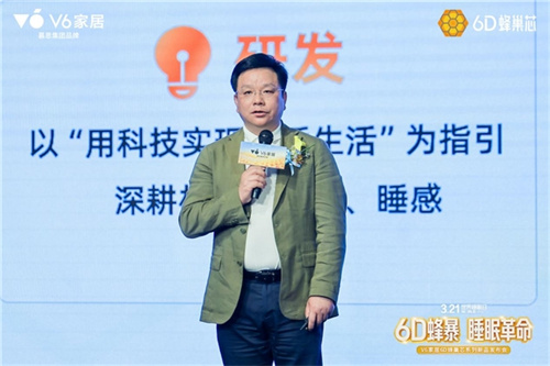 慕思集团V6家居总经理江涛在发布会上指出,V6家居是慕思集团年轻的家居品牌,承接慕思集团“让人们睡得更好”这一优秀的基因和使命,2025年V6家居战略调整为“健康的睡眠系统+舒适的生活方式”。不仅提出了六根健康睡眠系统解决方案,而且作为睡眠系统最核心的品类,床垫一直都是研发中心重点投入科技创新的重点,持续以开创性材质定义健康睡眠标准。